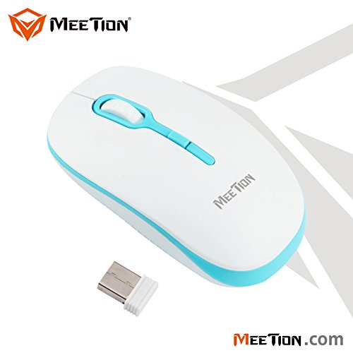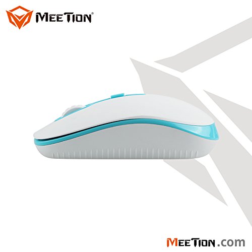 Meetion - Mouse wireless sottile Mini 2.4G con ricevitore Nano, 4 bottoni, 3 livelli DPI, ideale per computer portatile / PC / Tablet / MacBook, rif. mtr547 BIANCO-BLU 82x160x40mm