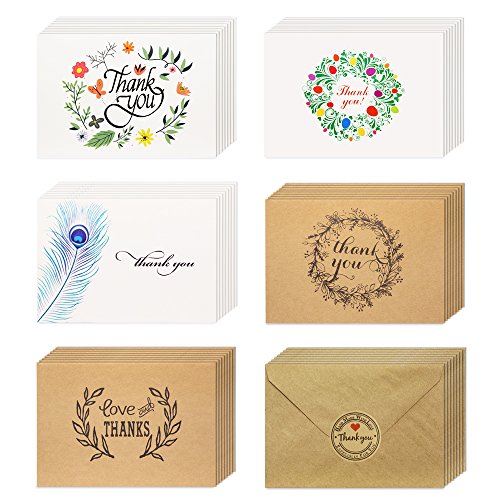 Set di biglietti di ringraziamento tutto-in-uno: comprende 40 biglietti di ringraziamento senza testo, 40 buste e 40 adesivi. Cinque design diversi, 8 biglietti per ogni design. Il set di biglietti di ringraziamento tutto-in-uno ti fornisce tutto quello di cui hai bisogno per aiutarti a risparmiare tempo e denaro.