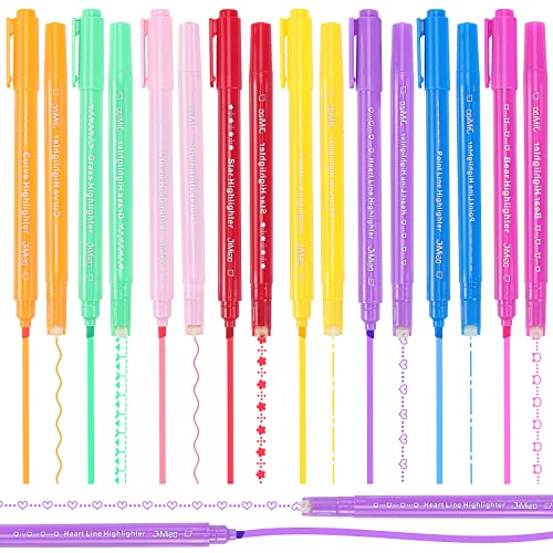 Meetory Set di 16 penne con evidenziatore curvo, penne flair che creano modelli, evidenziatori estetici a pastello a doppia punta, pennarelli per scrapbooking