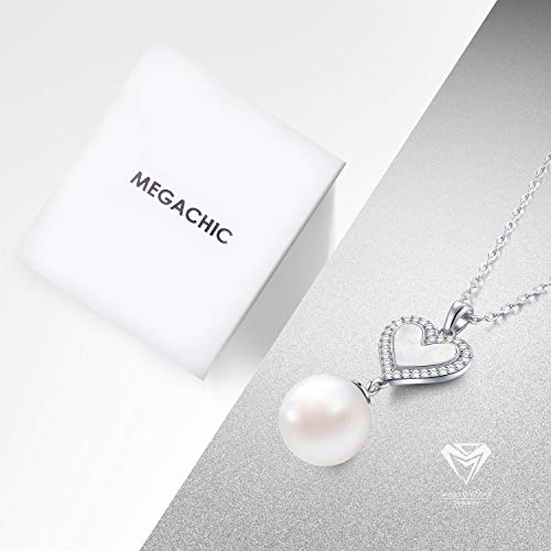 MEGACHIC Collana da Donna in Argento Sterling 925 con Madreperla Perle Cuore Cristalli da Swarovski