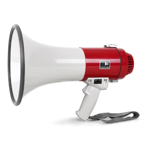 Auna Megafono microfono a condensatore (25W, Raggio d'azione 600m, Funzionamento a Batteria, Autonomia 6 Ore, Funzione Sirene, Resistente al Maltempo, Struttura in Plastica) Bianco/Rosso