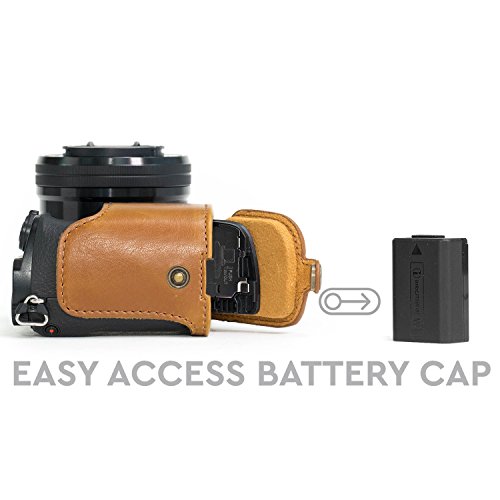 Realizzata su misura - la custodia metà copertura in finta pelle con Accesso alla Batteria è appositamente realizzata con pelle di ottima qualità per fotocamere Sony Alpha A6300, A6000