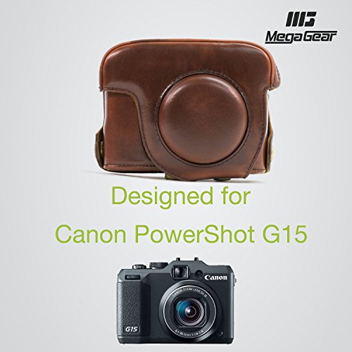 MegaGear Custodia Borsa in Pelle per Canon PowerShot G15, Canon PowerShot G16, Marrone Scuro