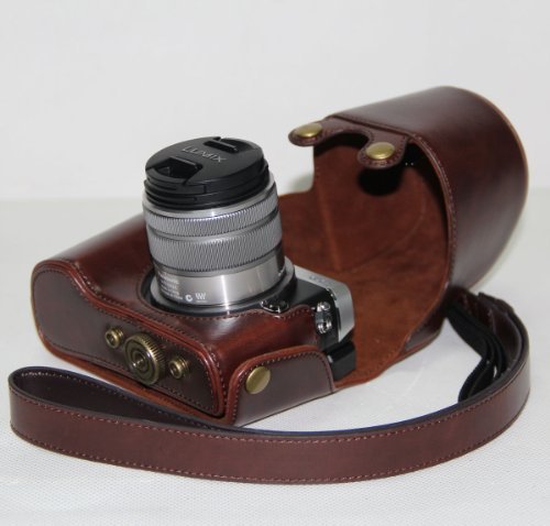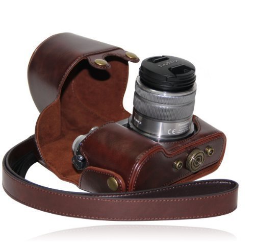 MegaGear Custodia Borsa in Pelle per Panasonic LUMIX GX7 + Lenti da 14-42mm e 20mm, Marrone Scuro
