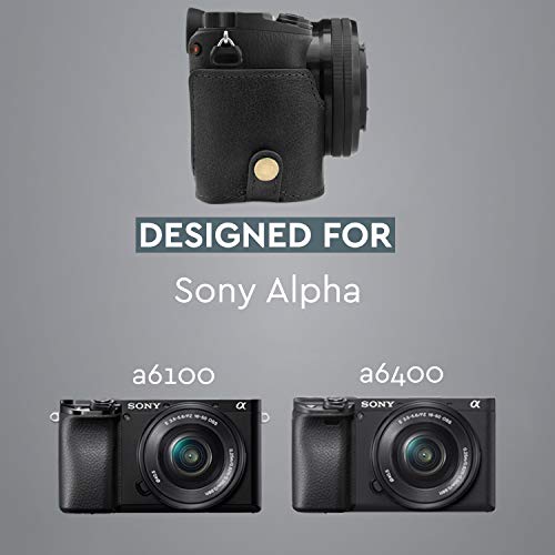 Realizzata su misura - la custodia metà copertura in vera pelle megagear con accesso alla batteria è appositamente realizzata con pelle di alta qualità per fotocamere sony alpha a6100, a6400 per offrire ottima protezione