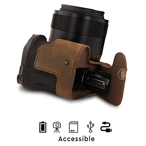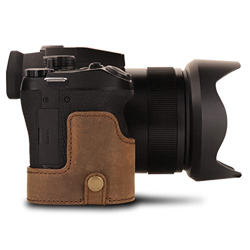 Realizzata su misura - la custodia metà copertura in vera pelle megagear con accesso alla batteria è appositamente realizzata con pelle di alta qualità per fotocamere leica v-lux 5, panasonic lumix dc-fz1000 ii per offrire ottima protezione