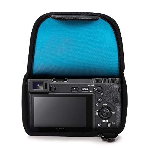 MegaGear custodia ultraleggera in neoprene, borsa protettiva per Sony Alpha A6400, A6500, A6300, A6000 |16-50 mm| con moschettone per un facile trasporto (Blu)