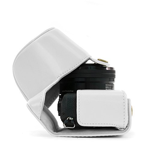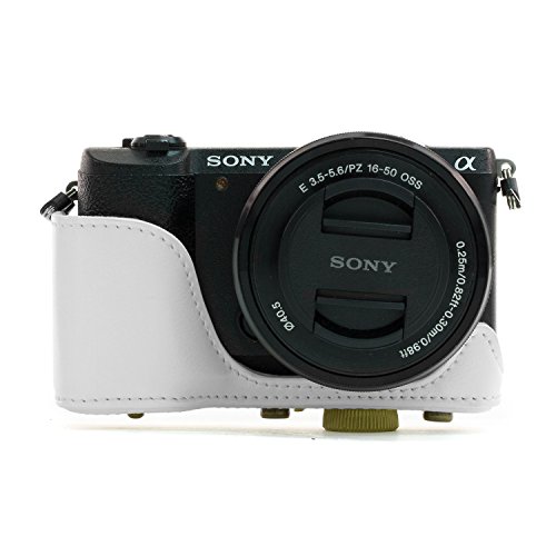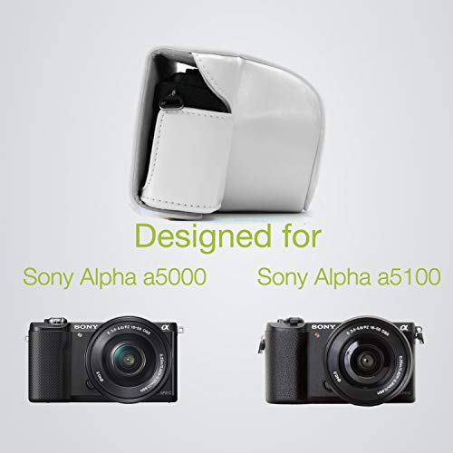 MegaGear Fotocamera Custodia Pelle Borsa Per Sony Alpha a5000, Sony A5100 con 16-50mm OSS Obiettivo (Bianco)