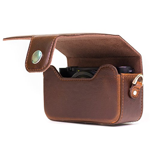 MegaGear MG1144 Sony Cyber-shot DSC-HX99, DSC-HX95, DSC-HX90V, DSC-HX80, DSC-WX500 Custodia in finta pelle per Fotocamera con Tracolla - Marrone scuro