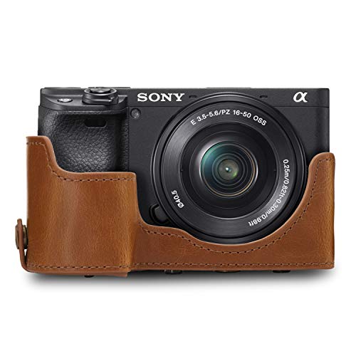 Su misura - la custodia per fotocamera megagear premium in pelle con batteria di accesso è stata appositamente realizzata per sony alpha a6100, a6400 (18 - 135 mm) in finta pelle di alta qualità;