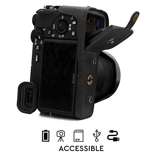Su misura - La custodia per fotocamera MegaGear in pelle con accesso batteria è realizzata appositamente in pelle di alta qualità per i modelli Sony Alpha A6600 (18-135 mm) per una vestibilità e una copertura di precisione.