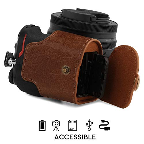 Su misura - La mezza custodia per fotocamera MegaGear Premium in vera pelle con accesso alla batteria è appositamente realizzata utilizzando pelle di alta qualità per i modelli Nikon Z50 per una vestibilità e una copertura di precisione.