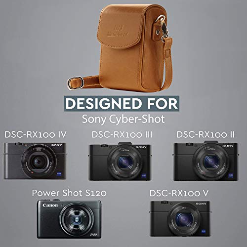 MegaGear MG280 Canon PowerShot S120, Sony Cyber-shot DSC-RX100 V, DSC-RX100 IV, DSC-RX100 III, DSC-RX100 II Custodia in finta pelle per Fotocamera con Tracolla - (Marrone chiaro)