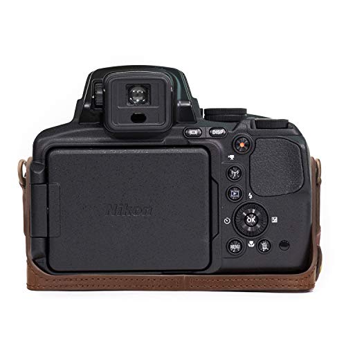 MegaGear Nikon Coolpix P900, P900S Ever Ready Custodia metà copertura in finta pelle per Fotocamera con Tracolla - Marrone scuro - MG955