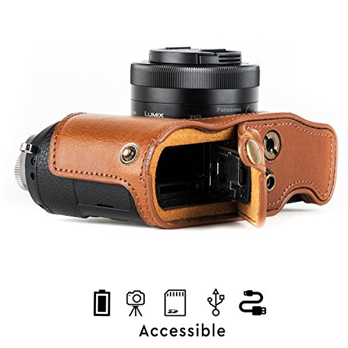 Realizzata su misura la custodia in finta pelle con Accesso alla Batteria è appositamente con pelle di alta qualità per fotocamere Panasonic Lumix DMC-GX85, GX80 con 12-32mm lente protezione