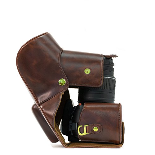 MegaGear "Ever Ready" Custodia in pelle obiettivo Marrone per New Nikon D5200 Telecamere con 18-55mm VR Lens