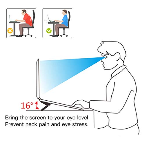 [DESIGN ERGONOMICO]: Il supporto per PC può regolare l'angolo di 16 gradi, questo supporto computer porta il tuo iPad o schermo del computer a livello degli occhi, ottimizzando e migliorando la postura per la lettura e la digitazione per prevenire il dolore al collo e lo stress visivo con il suo ergonomico elegante design con un concetto multifunzionale quando si utilizza questo riser in ufficio, letto o scrivania.