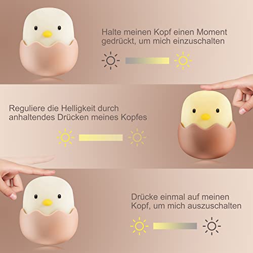 Morbido e sicuro: la luce notturna a forma di uovo con funzionamento touch in piacevole silicone incoraggia a afferrare e premere, senza il rischio di ingestioni di piccole parti grazie agli occhi intagliati