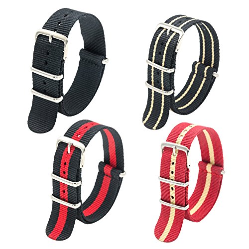 MEGALITH Cinturino Orologio 4 Pacchetti 18mm 20mm 22mm Balistico Cinturino Nato Cinturino in Nylon con Bar Primavera Link Pin Remover Strumento (22mm, Black+Black Khaki+Red Khaki+Black Crimson)