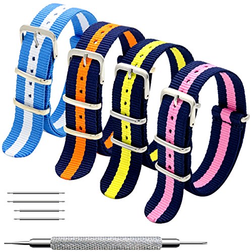 MEGALITH Cinturino Orologio 4 Pacchetti 18mm 20mm 22mm Balistico Cinturino Nato Cinturino in Nylon con Bar Primavera Link Pin Remover Strumento (22mm, Sky White+Navy Pumpkin+Navy Pink+Navy Yellow)