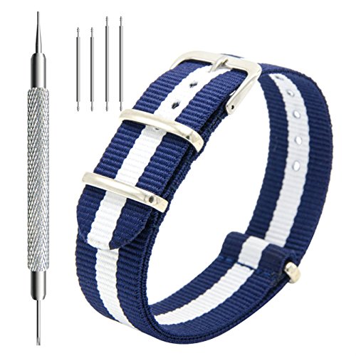 MEGALITH Cinturino Orologio 4 Pacchetti 18mm 20mm 22mm Balistico Cinturino Nato Cinturino in Nylon con Bar Primavera Link Pin Remover Strumento (18mm, Black+Linen Navy+Navy White+Navy Red)