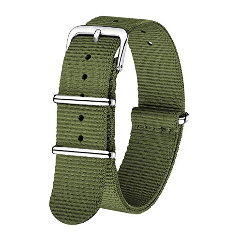 SELEZIONE LUNGHEZZA E LUNGHEZZA REGOLABILE: Disponibile in 10 pollici di lunghezza e 5 dimensioni in larghezza (16mm, 18mm, 20mm, 22mm, 24mm) per adattarsi a migliaia di modelli di orologi. Per selezionare la larghezza, misurare la larghezza del braccio o la larghezza della banda corrente in punto di connessione e selezionare la larghezza più vicina alla misura. Se la banda è più lunga del desiderato, è possibile regolare la lunghezza o modificare il modo in cui lo si indossa