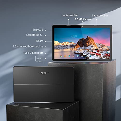 XORO MegaPad 1333 - Tablet PC da 13 pollici con CPU SixCore A72 da 1,6 GHz, 4 GB di RAM, 32 GB di flash, display IPS FullHD, WLAN (2,4/5 GHz), Bluetooth 4.2, Android 10