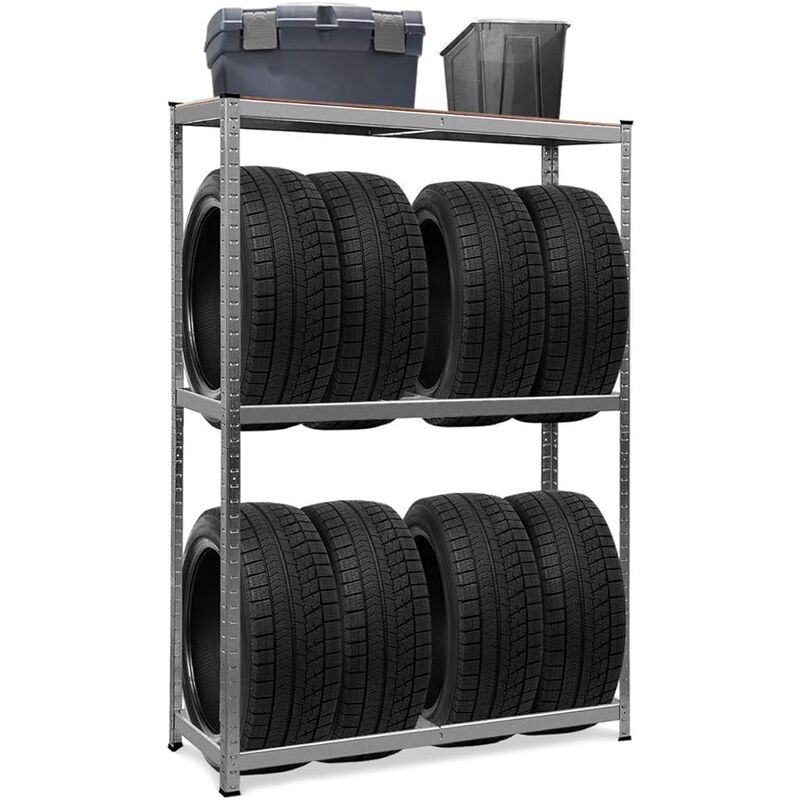 Non solo per pneumatici ma anche per altri oggetti grazie al pannello superiore in MDF Ogni ripiano può caricare un peso di 150kg, 3 ripiani in totale 450kg Telaio d'acciaio zincato resistente al tempo Con piedini antiscivolo per proteggere sia lo scaffale che il pavimento Si adatta in tante occasioni, garage, officina, magazzino, distributore di benzina, area di servizio, etc