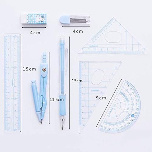 MEGAUK Set di compasso e matematica 8 in 1 per matematica Geometria, set di cancelleria per bambini, 8 pezzi (blu)