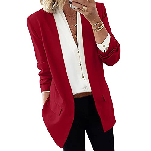 Meggsnle Blazer Donna Elegante Donna Manica Lunga Cardigan aperto Solido Casual Oversize Pouchett Giacca Cappotti Donna Elegante Blazer Elegante Donna Tuta Primavera, Colore: rosso, XL