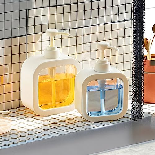 Megory Dispenser di sapone da 300/500 ml, dispenser per shampoo con pompa ed etichette impermeabili per cucina, bagno, 2 pezzi di plastica (1 pezzo da 300 ml + 1 pezzo da 500 ml)