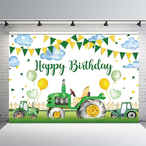 MEHOFOND 7x5ft Trattore Verde Ragazzo Sfondo di Compleanno Palloncini Bandiera Prato Fattoria Tema Festa Sfondo Banner Decorazione Ritratto Bambino Fotografia Puntelli Torta Smash Foto Stuido