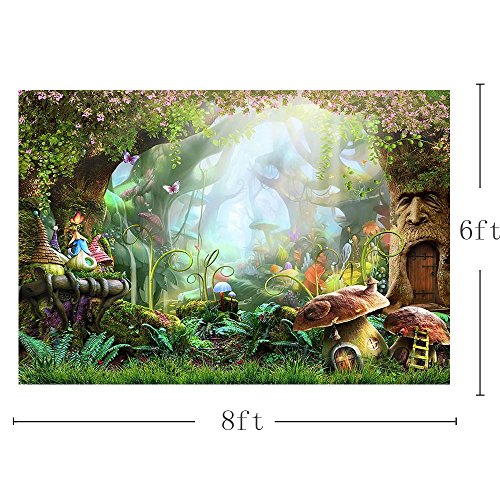 MEHOFOTO 2,4 x 1,8 m Foresta Incantata Foto Studio Sfondo Cartone Animato Fiaba Albero Magico Fungo Principessa Festa di Compleanno Decorazione Banner Fondali per Fotografia