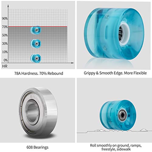 Mehomei Ruote Crusierboard Longboard 60mm 78A con Cuscinetti ABEC-9 608ZZ per Skateboard Fishboard Pennyboard, LED Ricambio Ruote per Crusierboard, 4 PCS, Blu