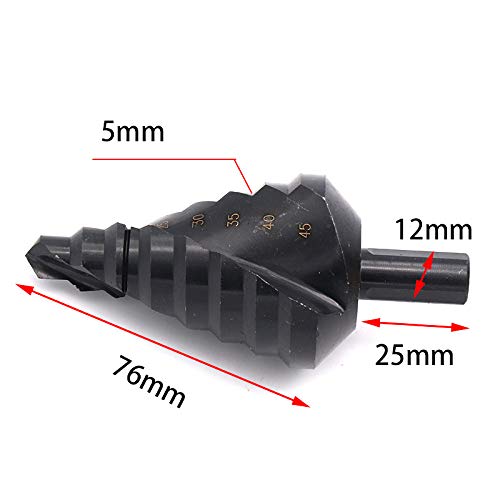 Meichoon Punte a gradini HSS Flauto a Spirale 10-45mm, Gambo a Triangolo Punta a scalare in nitruro di Bit