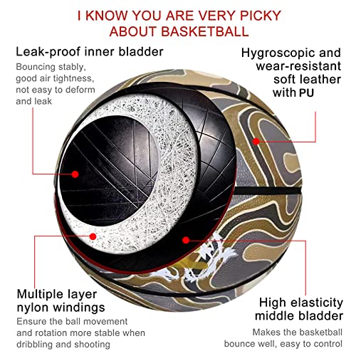 MEIDUO No. 7 Pallone da basket personalizzato, progettato secondo i cinque elementi di oro, legno, acqua, fuoco e terra, in morbida pelle PU resistente all'usura, beige (terra)
