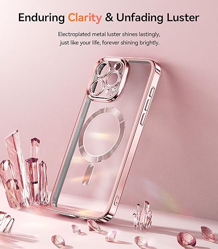 ✨【Metallico lucido e cristallino】Pur mantenendo il retro trasparente, i bordi, la fotocamera e l'anello magnetico sono impreziositi da una lucentezza metallica, rendendo questa custodia davvero unica. La custodia magnetica trasparente progettata per iPhone 15 Pro Max combina tecnologie avanzate per preservare la straordinaria chiarezza del tuo iPhone. Con la sua ottica tedesca Dite addio agli antiestetici ingiallimenti e godetevi una custodia che sembra sempre come nuova.