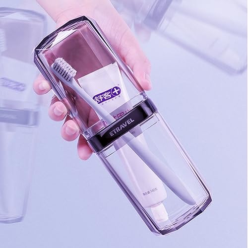 MEIJMJIA - Portaspazzolino da viaggio trasparente, contenitore per dentifricio, portatile, antipolvere, antibatterico, per casa, campeggio, scuola, scatola (trasparente viola)