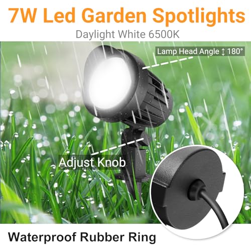【Illuminazione pulita e brillante】 Progettato con nanoriflettore per ridurre la rifrazione dell'illuminazione, nel frattempo, aumenta efficacemente i raggi di luce trasmessi. L'angolo del fascio di 30° e la testa regolabile a 180° consentono di controllare completamente e mirare facilmente a qualsiasi punto come alberi o statue.