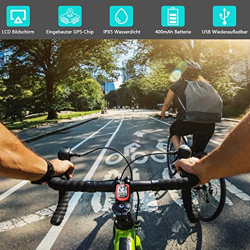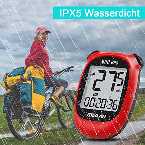 MEILAN M3 Mini Contachilometri Bici Senza Fili GPS Computer da Bicicletta Wireless Contachilometri da Bicicletta Ciclocomputer GPS con LED Schermo Retroilluminato Tachimetro per Bici (Rosso)