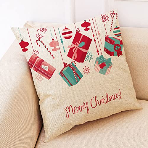 Meioro Fodere per cuscini natalizi Fodere per cuscini natalizi 45x45cm Decorazioni Fodere per cuscini Federe morbide in lino Pupazzo di neve Renna Santa Elfo Federa per divano (Xmas-Red A, Set of 4)