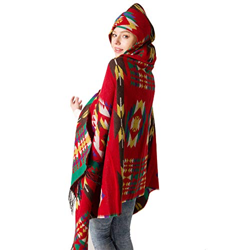 MeiPing Poncho Donna Vintage Inverno Etnico Sciarpa a Quadri Elegante Boho Hippie Scialli con Frange Nappa Mantello Scialle Oversize Stole