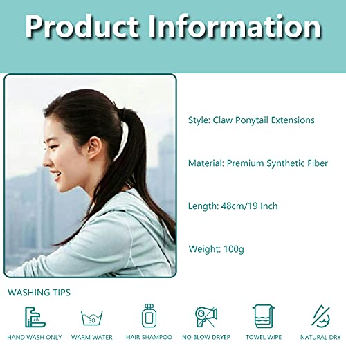 Meiriyfa - Extension con coda di cavallo nera lunga, da donna, 48 cm, con clip di fissaggio, con capelli sintetici, per uso quotidiano e feste