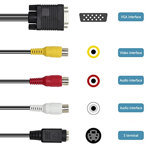 MEIRIYFA Cavo VGA a RCA, VGA maschio a 15 pin a TV S-Video 3 RCA AV TV Out Cavo adattatore convertitore S-Video 3 RCA Out cavo per PC Computer