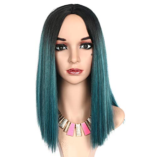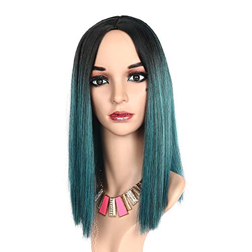 MEIRIYFA Parrucca Verde per Donna, Parrucca Diritta Bob Parrucca Sintetica Verde Scuro di Media Lunghezza con Parte Centrale