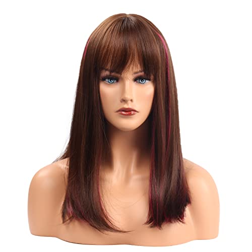 MEIRIYFA Parrucche Lunga Marrone con frangetta per donna Parte centrale marrone con riflessi rosa rossi Parrucca per cosplay lunga e dritta