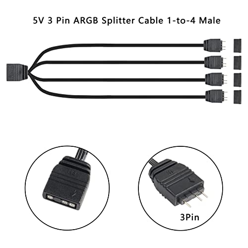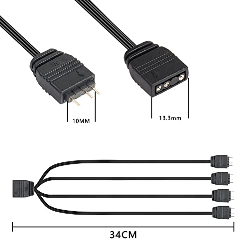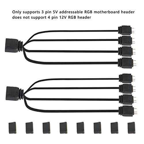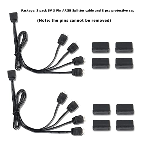 MEIRIYFA Cavo splitter ARGB da 5 V, 3 pin, 1 femmina a 4 porte maschio 3 pin indirizzabile RGB Splitter prolunga per strisce LED ARGB, ventilatori ARGB con cappuccio di protezione, confezione da 2