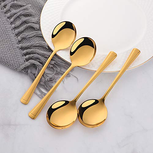 Meisha Cucchiai da brodo Rotondi,12 Pezzi Harley Modello Set di cucchiai da minestra in Acciaio Inossidabile, cucchiai da tavola per casa, Cucina o Ristorante, Oro