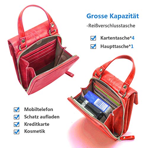 MEISHANG Piccola Borsa a Tracolla da Donna, Borse a Tracolla in Pelle PU Piccole Borsa per Cellulare Mini Portafogli Donna Telefono Borse per Cinturino Regolabile Sotto 6,5 pollici (Rosso)