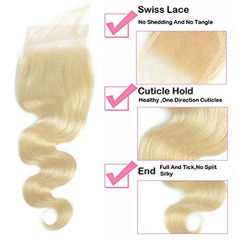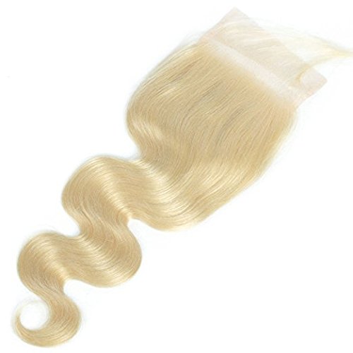 Meisi Hair 613 Blonde - Extension per capelli, capelli remy vergini, capelli brasiliani, capelli umani 6A, setosi, lisci/onde naturali, decolorati naturalmente, nodi decolorati, pizzo svizzero superiore da 20,3-50,8 cm (8-20”), taglia capelli 10,1 x 10,1 cm (4 x 4”)